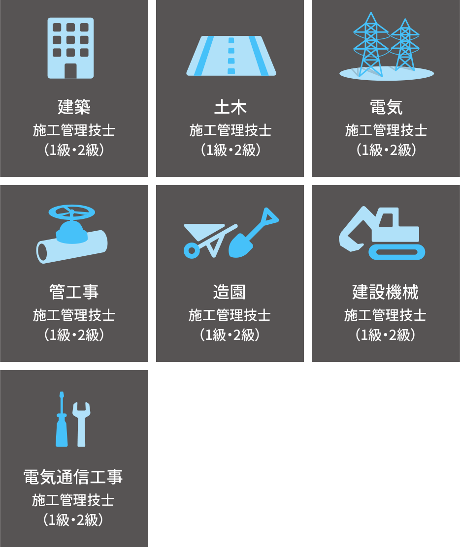 施工管理技士は7つあります